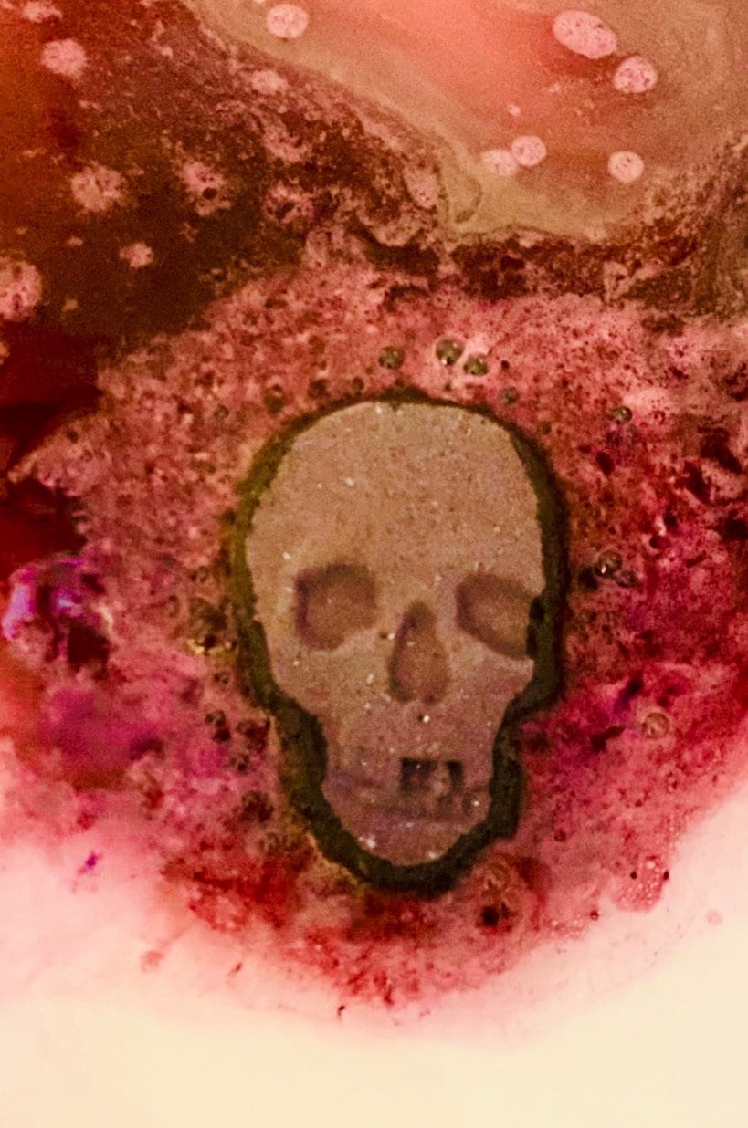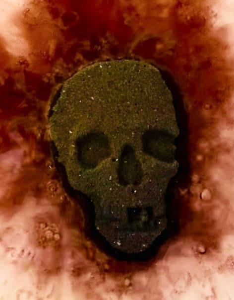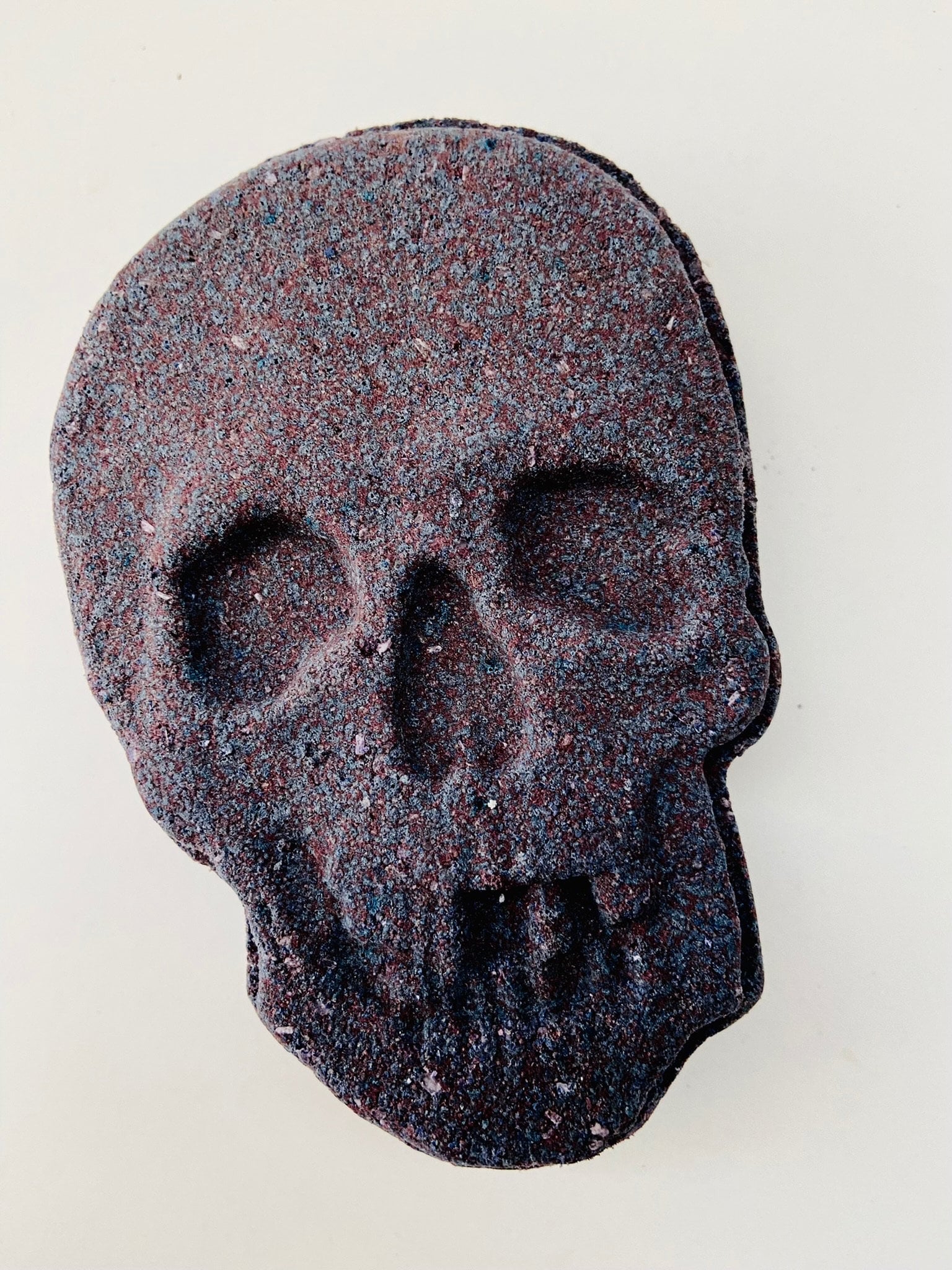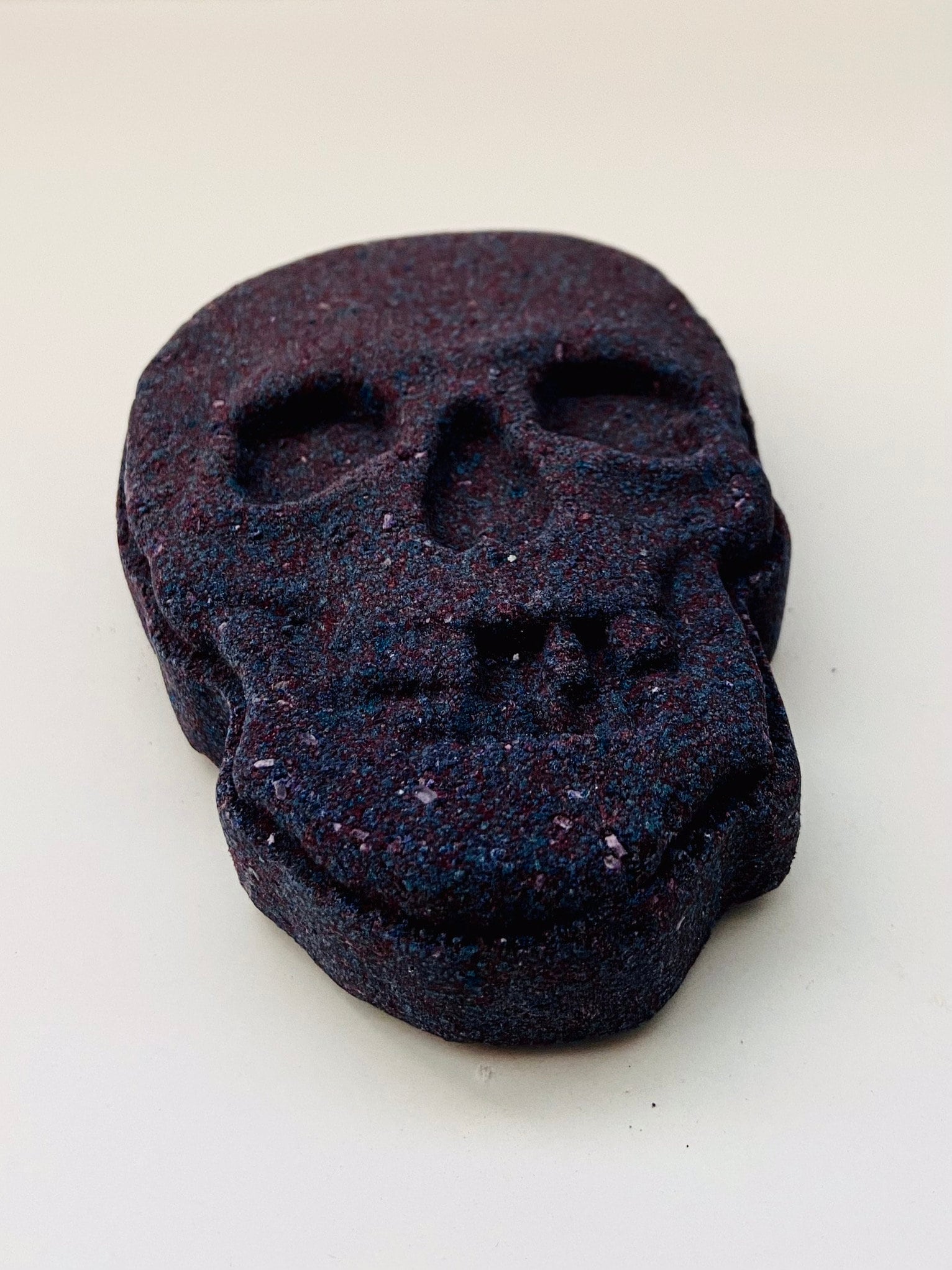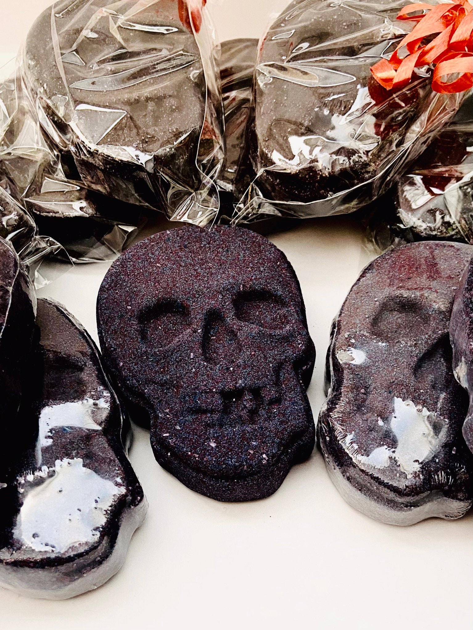 This large, spooky 5 oz. black skull Bath Bomb is scented in a bone chilling spearmint eucalyptus.When placed in water, it fizzes and changes water color to red and black. Makes a great Halloween gift for kids and adults a like!!