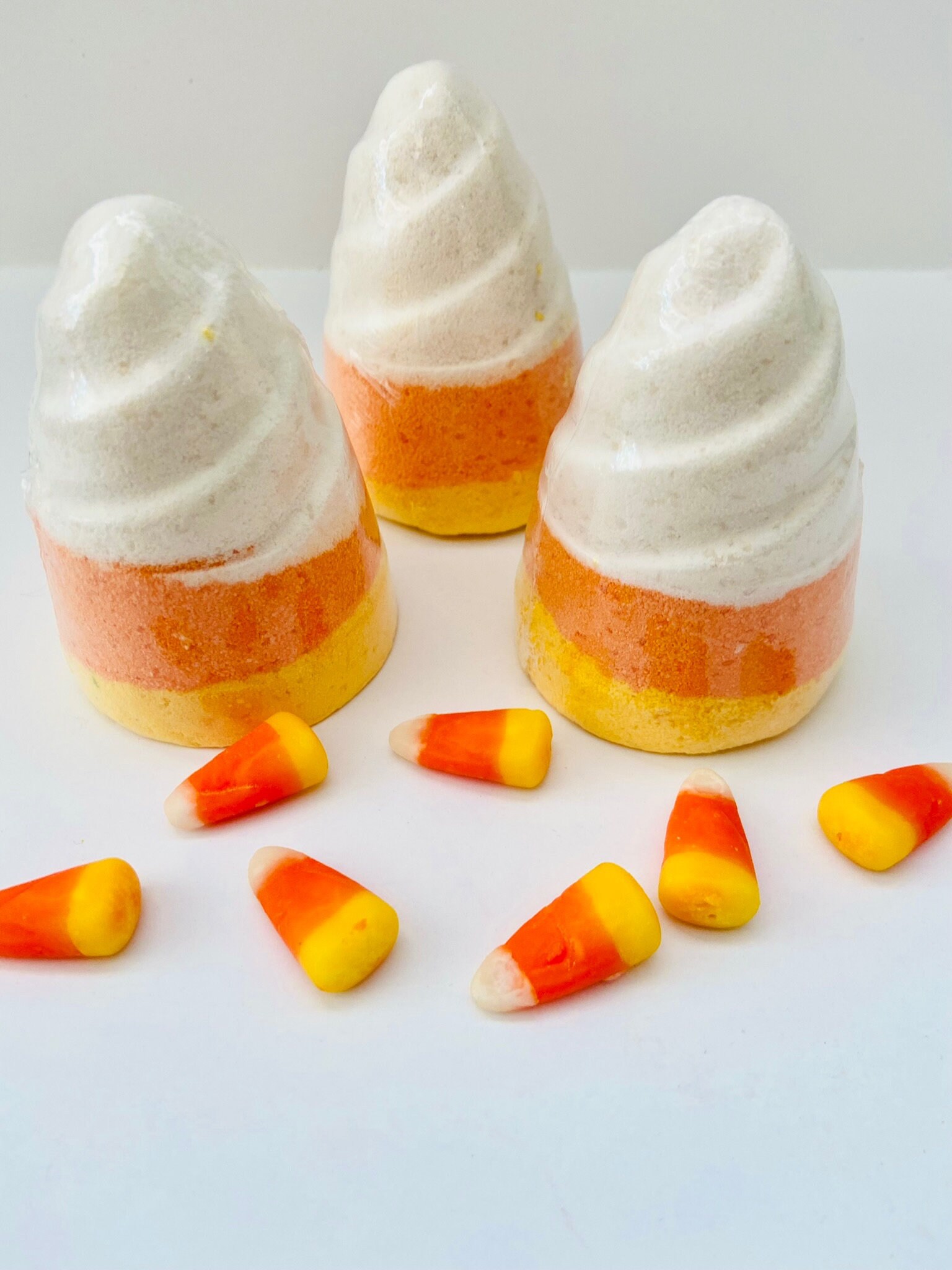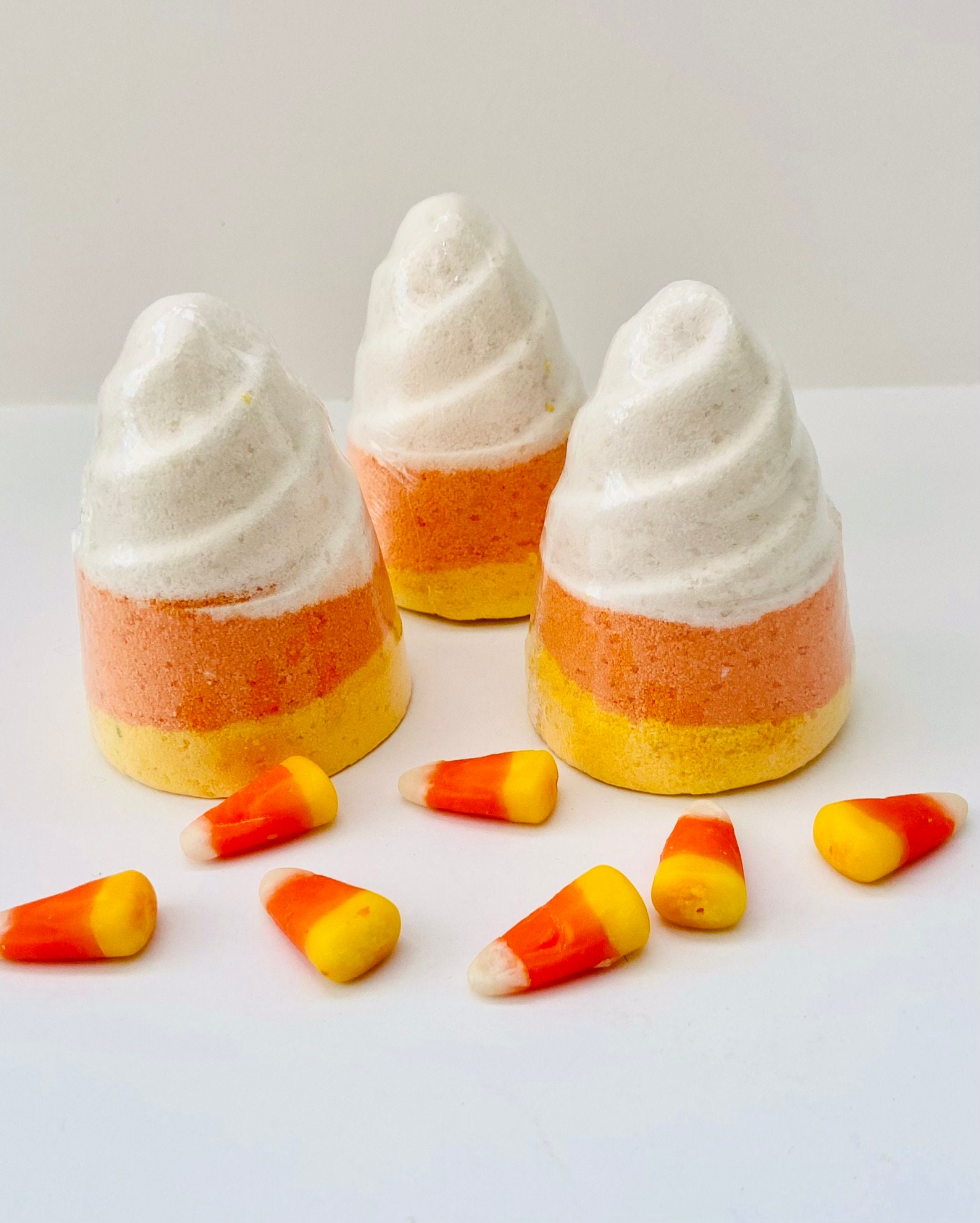 This adorable, 4 oz. Candy Corn Bath Bomb is scented in a delicious blend of sweet caramel and buttery vanilla. When placed in water, it fizzes and changes water color to bright yellow and orange. Makes a great Halloween gift for kids and adults a like!!