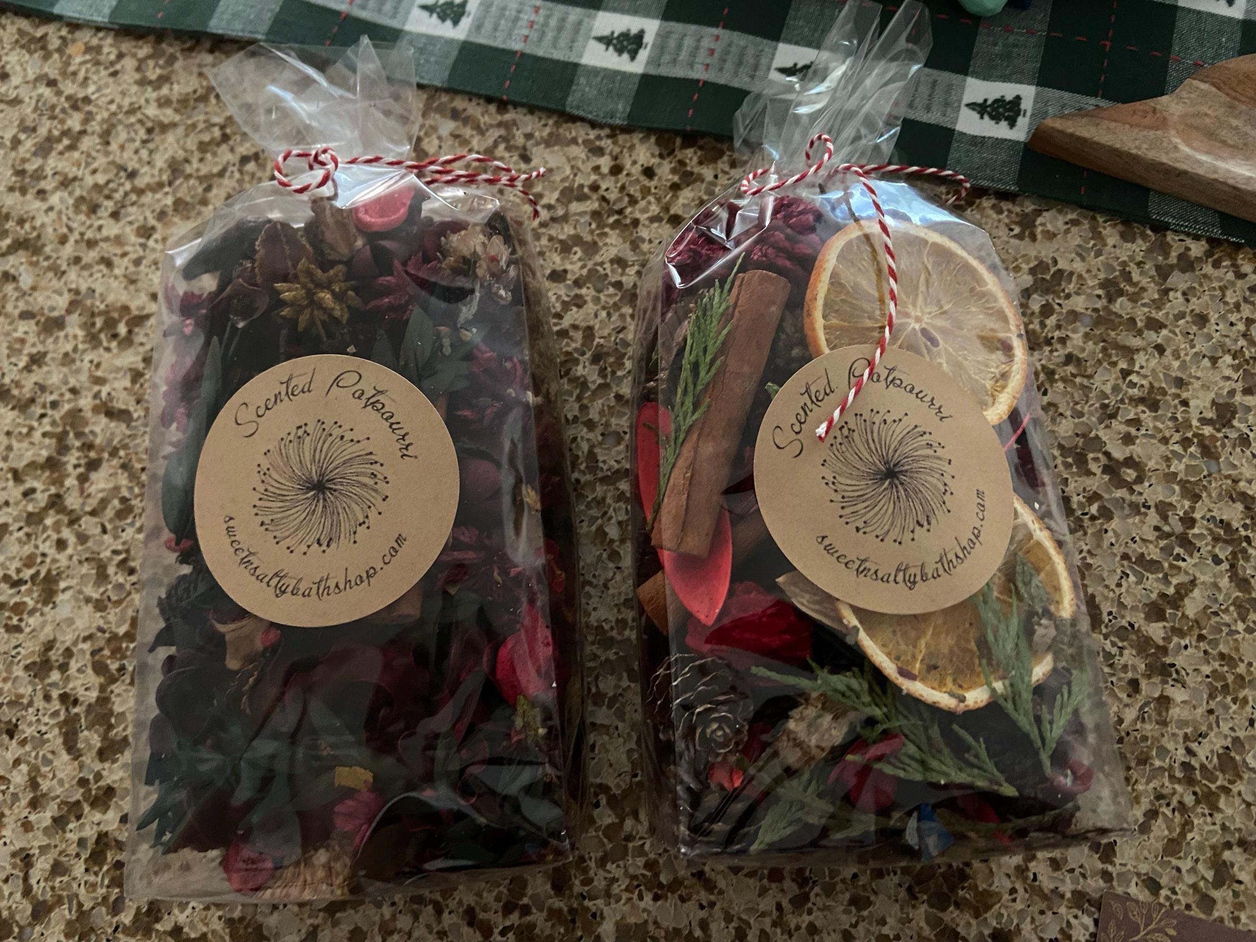 Gorgeous table top small-medium cut potpourri comes scented in your choice of winter holiday fragrance. Perfect for freshening small spaces, drawers, closets, bathrooms, etc. Use as a vase or bowl/dish filler. Great for holiday decorating!!