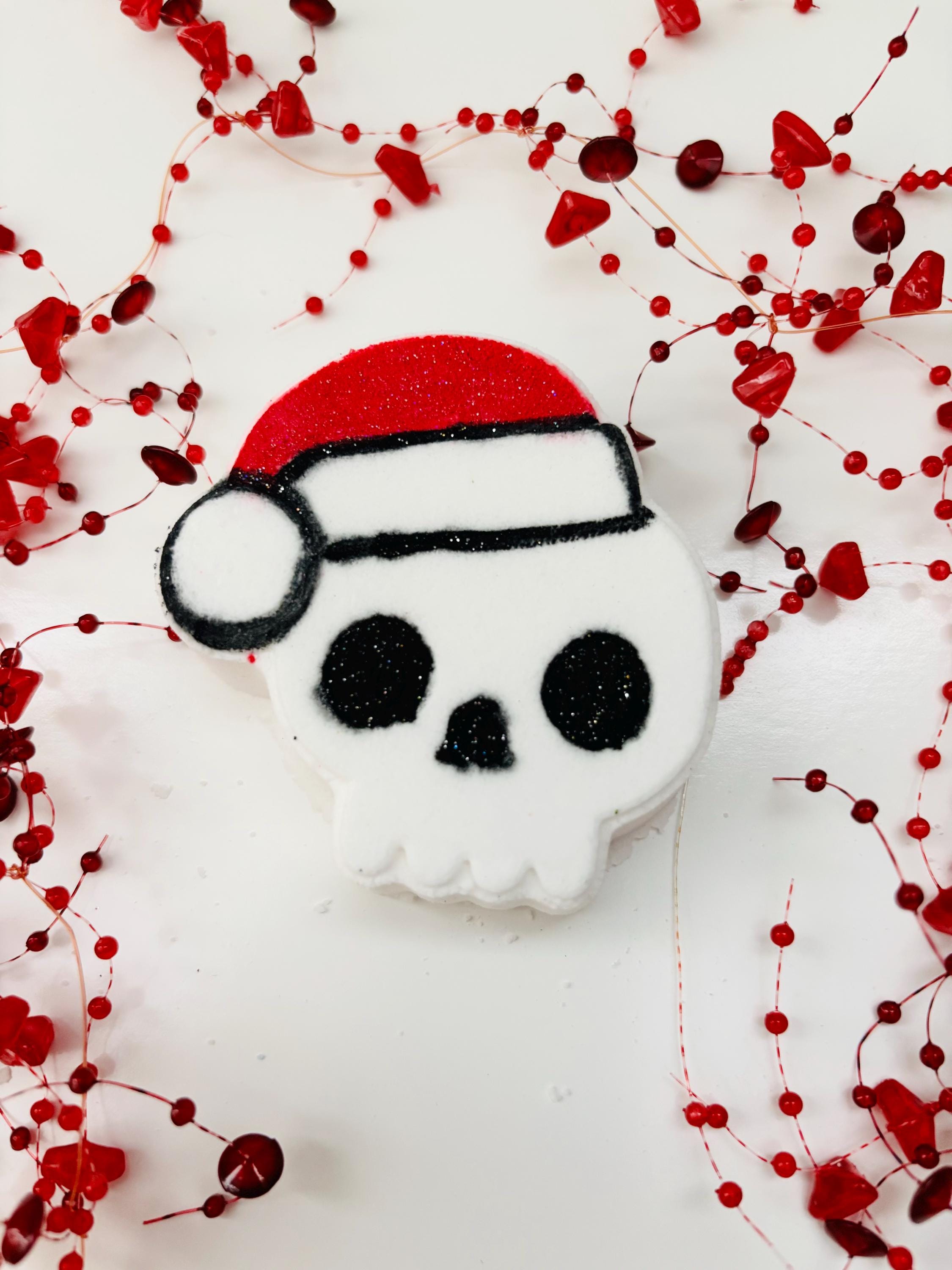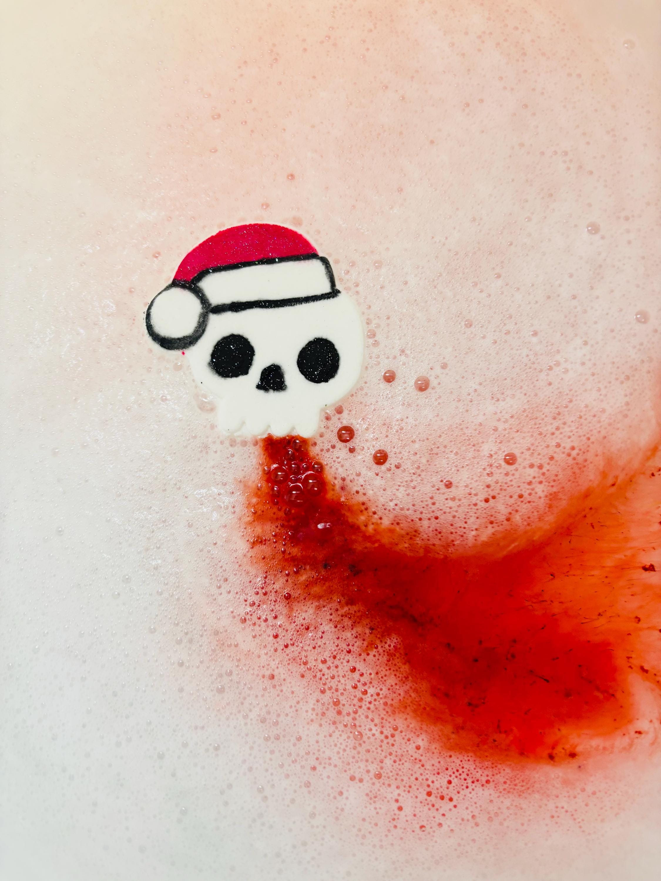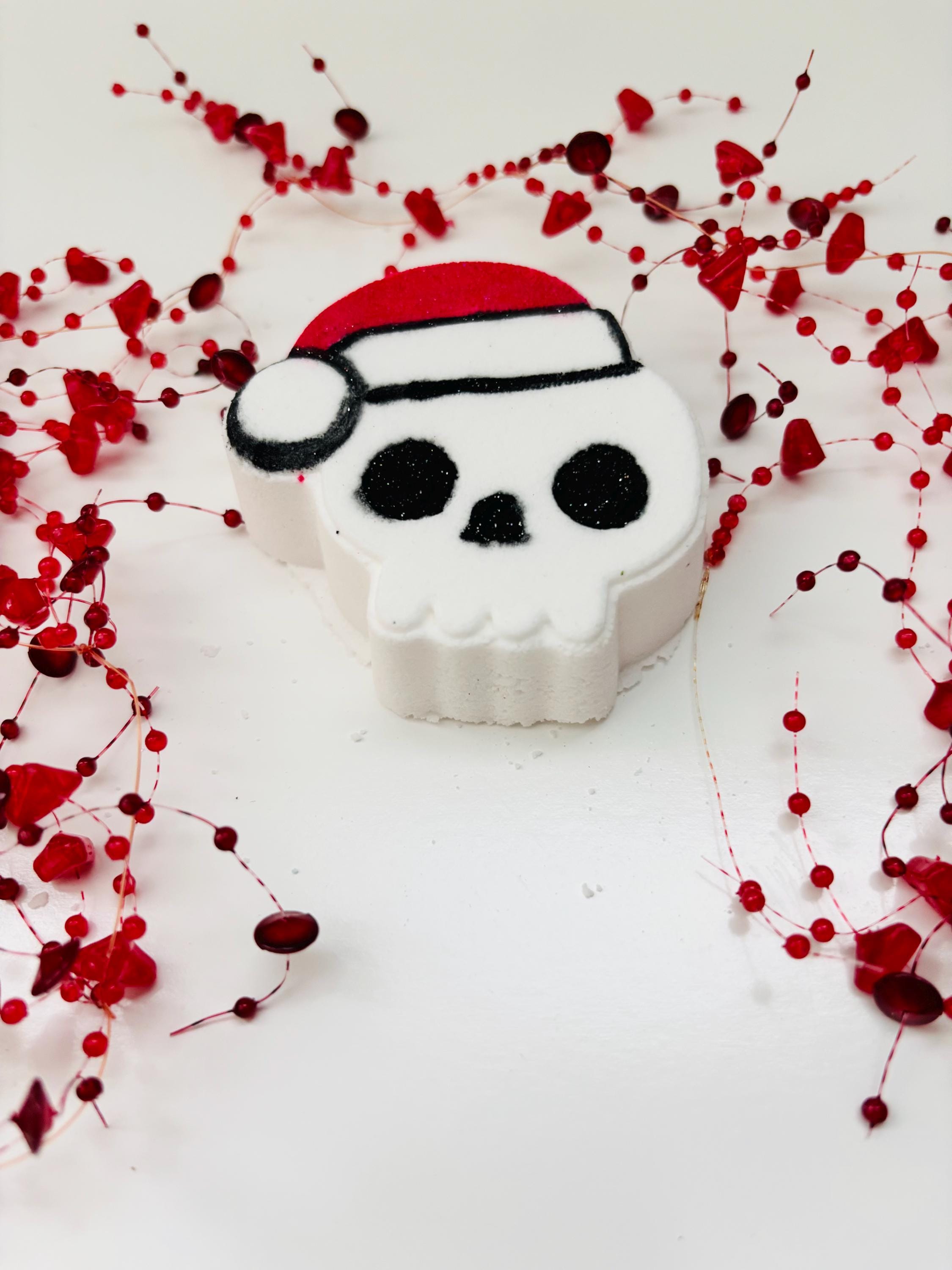 Christmas ghouls will love this Santa skull bath bomb! Skull smells like candy canes and will turn water color red when using. Made with skin softening coconut oil for moisturizing skin. Makes a great holiday gift/stocking stuffer!! 🎅🏼 ☠️