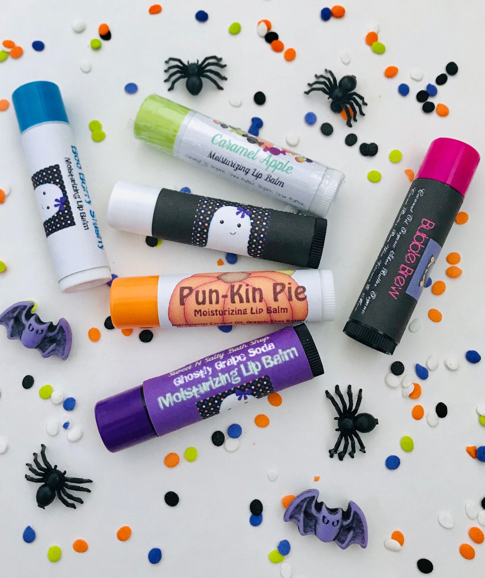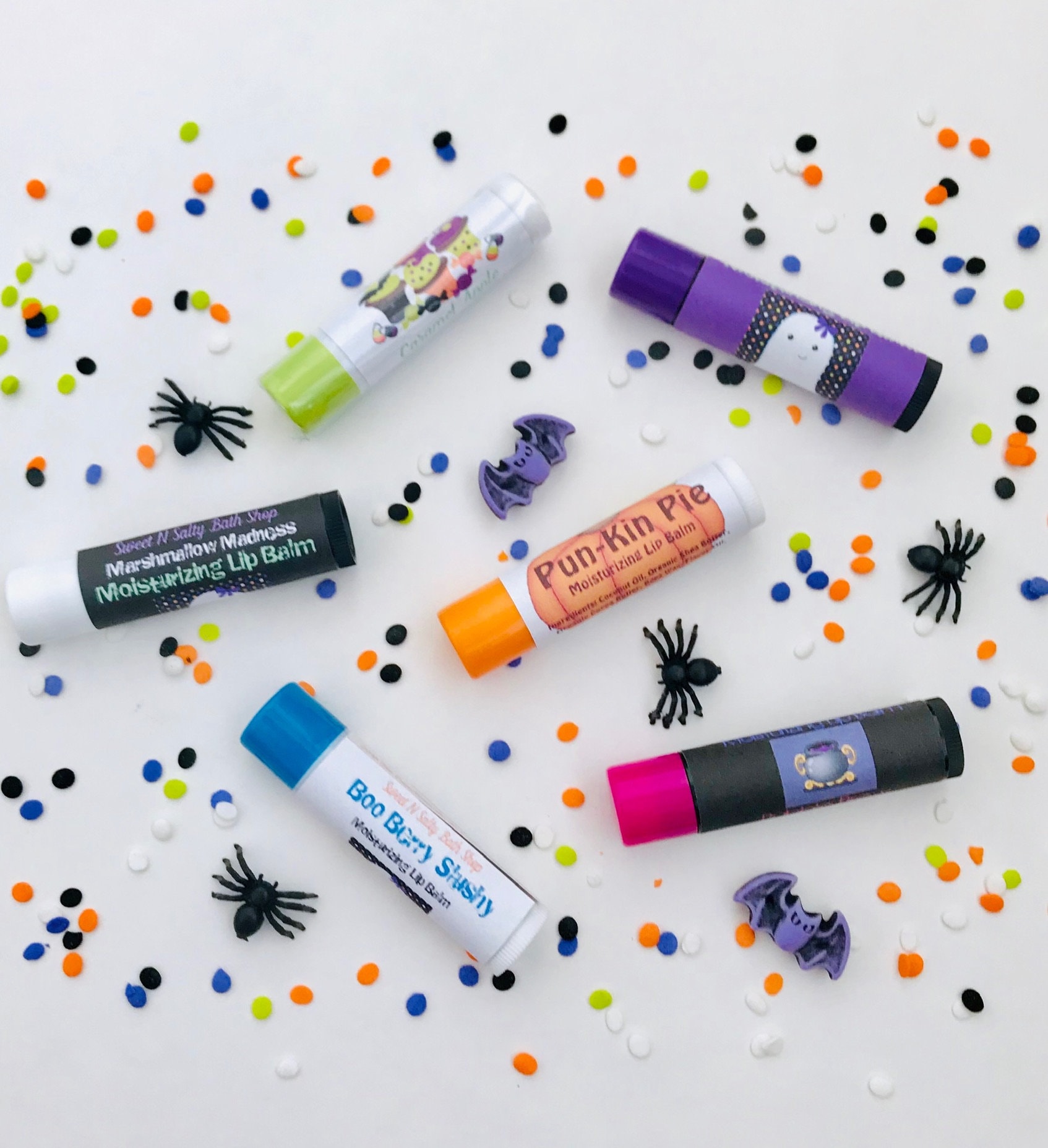 These adorable Lip Balms are deliciously scented in your choice of 7 Halloween Flavors. Make great gifts and are a sweet alternative to candy. No calories or cavities, and can be enjoyed by kids and adults alike.